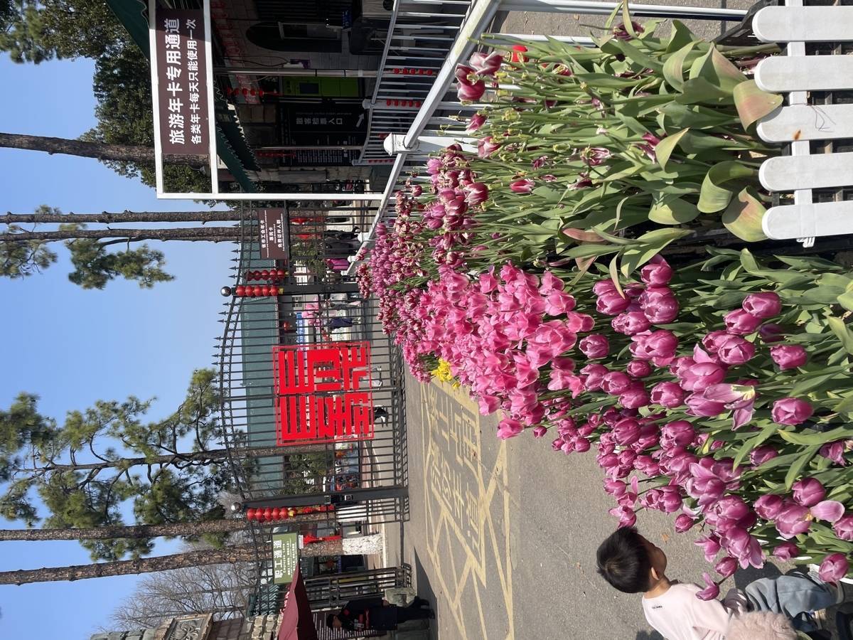 植物园大门口,就有粉色、紫色郁金香笑容迎宾,投入大门的中心花园,好多搭客在此拍郁金香。沿着园路,玫红、金黄的郁金香炫彩勾边,令东谈主心旷神怡,湖边缓坡上的郁金香如彩带般流动,有葱绿大草坪作念配景,有湖水烘托,若何拍皆是好意思片。