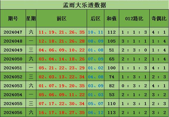 上期转头:大乐透上期前区开出16 17 18 27 35 ,后区06 12,和值113,区间比2:1:2,奇偶比3:2。